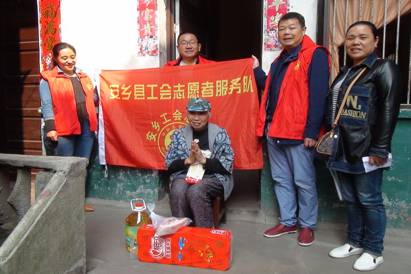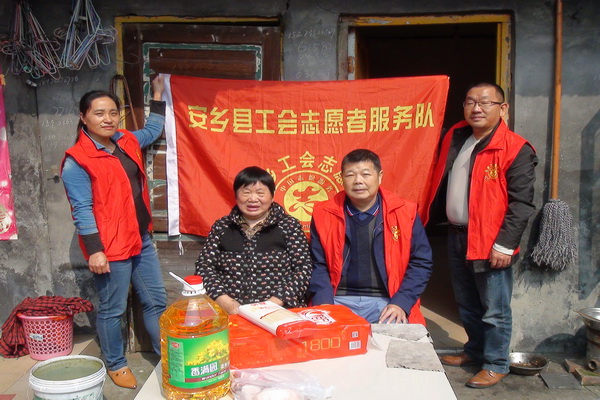 10月25日至10月27日,安乡县工会志愿者服务队利用休息时间,组成多支志愿服务小分队,分赴深柳镇五总社区、西门口社区、书院洲社区、深柳社区等社区,开展“我们的节日·重阳”之“重阳敬老·最好的爱是陪伴”主题活动。先后看望慰问了30位孤寡老人、困难患病老人、空巢老人、困难患病劳模、困难下岗职工,志愿者分别送上了大米、食用油、猪肉、面条、卫生纸、洗洁精等生活物质。