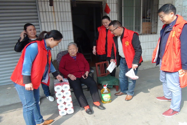 当天早上,安乡县工会志愿者服务队三名志愿者给陶奶奶送来了食用油、猪肉、面条、卫生纸等生活物质,帮老人打扫卫生,整理居家用品后赶在早上8点回单位上班。