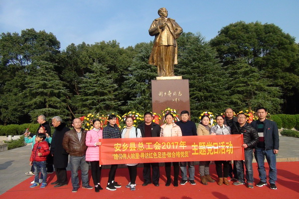 追忆着革命先辈的红色足迹,充分感受着枪林弹雨的峥嵘岁月,震撼于伟人们舍小家顾大家的牺牲精神和民族气节。第二天,全体工会党员和入党积极分子来到了宁乡花明楼镇炭子冲村,参观了刘少奇纪念馆。纪念馆共有一个序厅8个展室。在这里,大家认真观看了每一件文物和图片资料,进一步了解了刘少奇同志在革命战争年代和社会主义建设时期,在党的建设、军队建设、经济发展、文化、教育等方面作出的卓越功绩,再一次感受到了这位历史巨人的朴素情怀和伟大的人格魅力。在刘少奇铜像广场,全体工会党员和入党积极分子向刘少奇铜像三鞠躬,绕铜像一周,并敬献了花篮。随后,大家一一参观了刘少奇同志故居、刘少奇文物馆、花明楼、修养亭、刘少奇坐过的飞机等处。