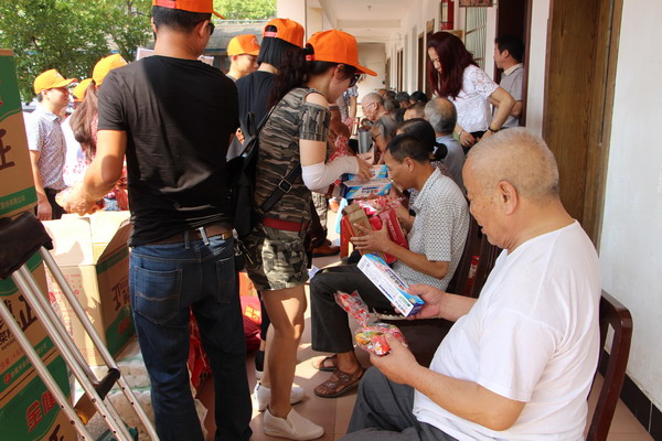 “奶奶、在这里过得好不好”?“好呀,解放前俺跟随父母当过叫花子,经常吃不饱饭,现在好呀,政府对我们很关心,吃住不愁,有病还免费治疗”。在安乡县深柳镇敬老院,今年100岁的章奶奶对志愿者说道。志愿者们给每位老人送上了月饼和其它生活用品,给福利院和敬老院送去了大米、食用油。